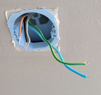 Chez moi j’ai une partie maison et une partie agrandissement. A première vue pas de souci côté maison, en revanche je rencontre un problème côté agrandissement : il me manque un fil de neutre (celui qui va au moteur du volet roulant. Ci-dessous photo avec 1 seul câble bleu dans la prise (j’en ai 2 dans la partie maison).