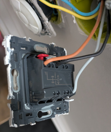 Dans ton boitier de l’interrupteur, tu as bien la phase (orange), le fil de neutre (bleu) et le fil de terre (jaune/vert).