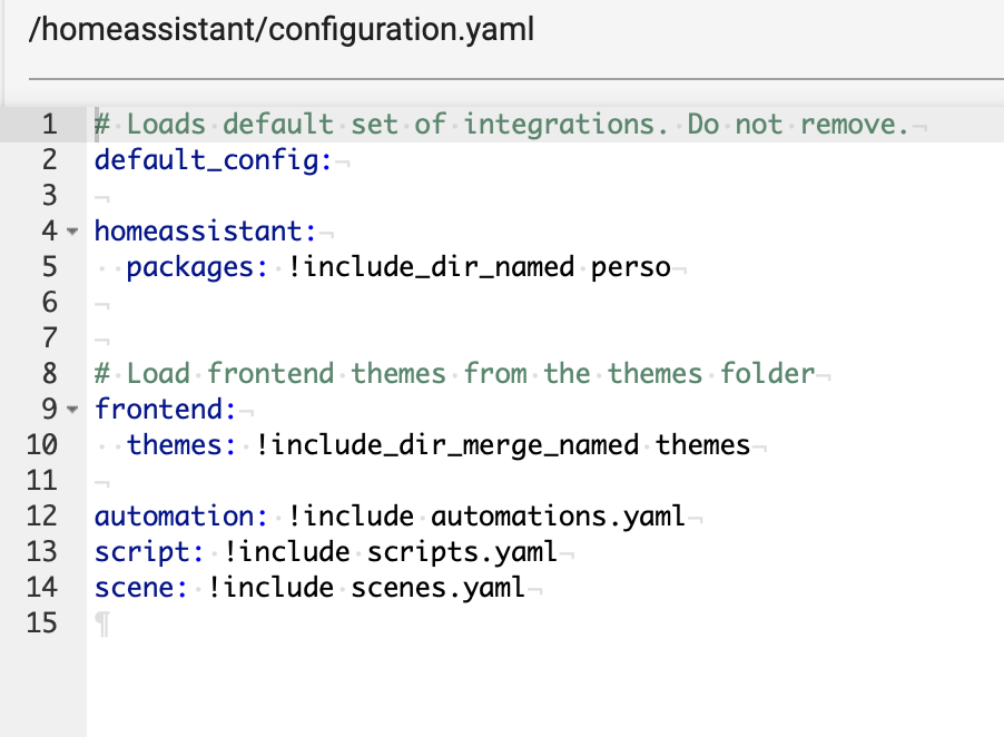 Le package (packages: !include_dir_named perso) permet si j’ai bien compris au fichier configuration.yaml de lire tout ce que contient le dossier perso (et ses sous dossiers) que j’ai créer.