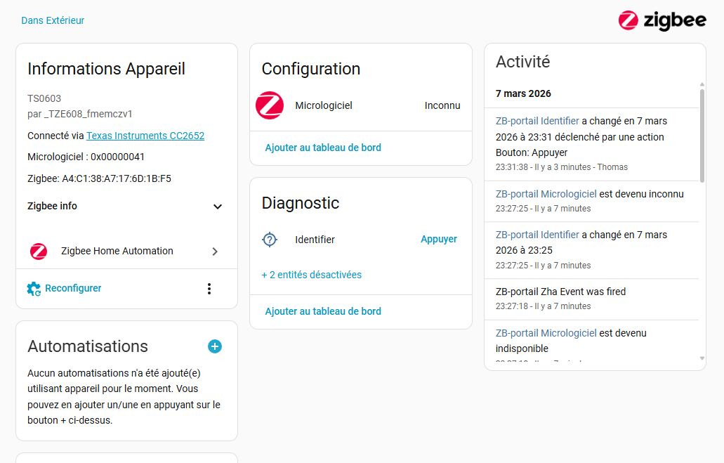 Dans le post ici , @Yam57 parlait de son module, d’après sa copie d’écran j’ai pensé qu’il était bien sous zha et qu’il a la configuration nécessaire :