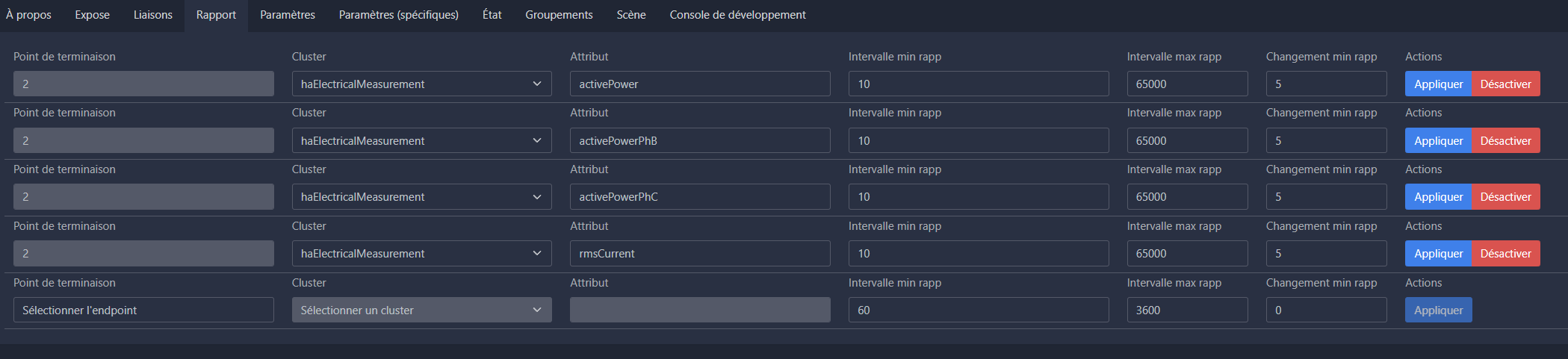 Je suis assez nouveau sur HA, la base j’arrive a faire mais là je coince. Je suis en Z2M, sur le tableau de bord de Z2M, mon EMIZB-151 m’indique des valeurs qui semble correct, en tension, en courant etc.