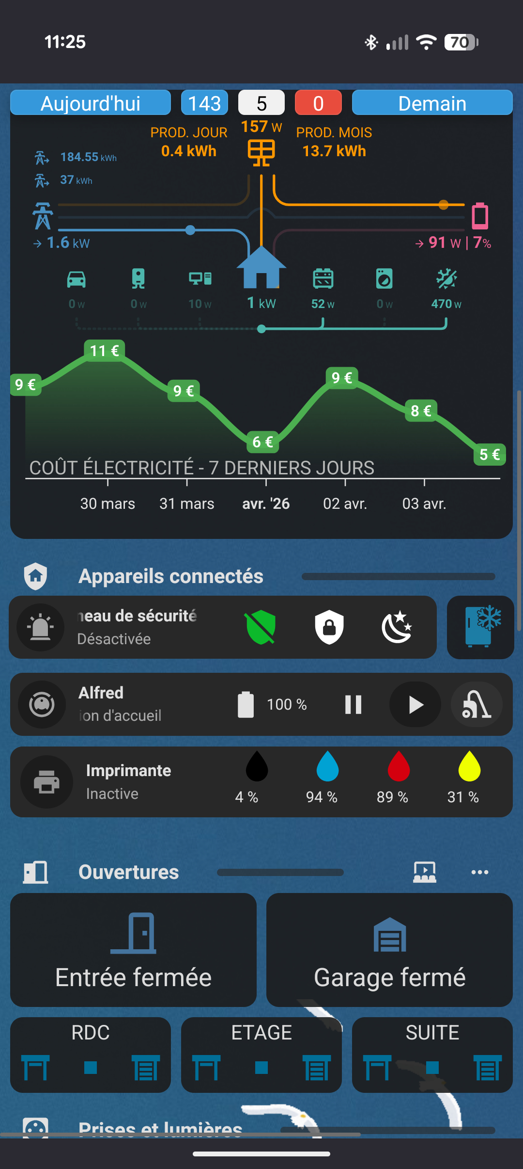 - la production solaire (jour + mois)
