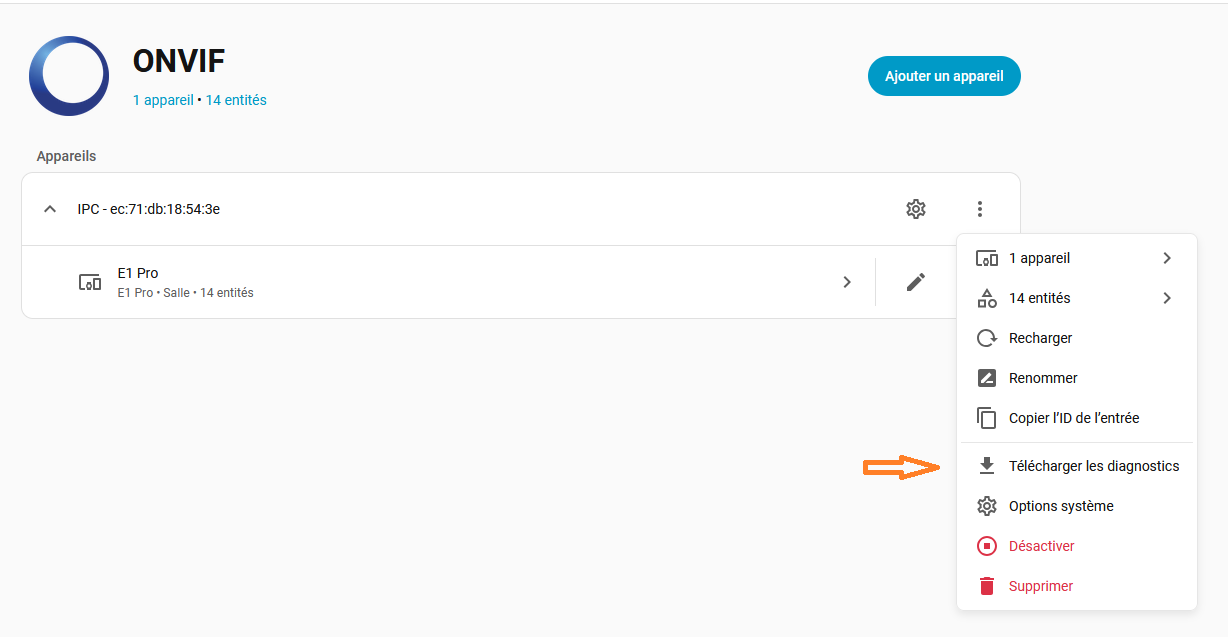 pour être sur du nom dans l’addons Onvif j’ai telecharger les diagnostics