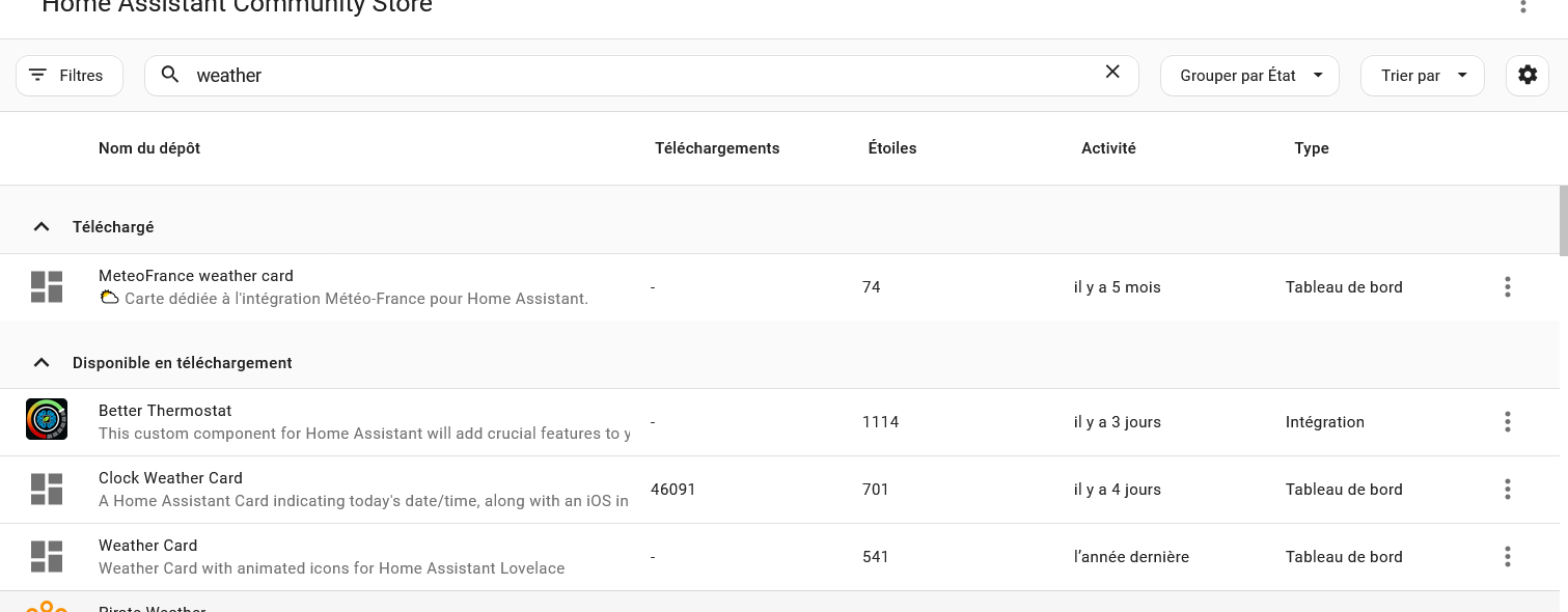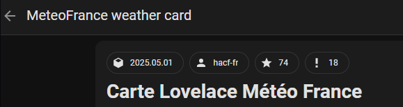 Quand je suis le mode opératoire du tuto, j’arrive à télécharger dans HACS une carte qui s’appelle : “MétéoFrance weather card”. Ensuite la doc dit :