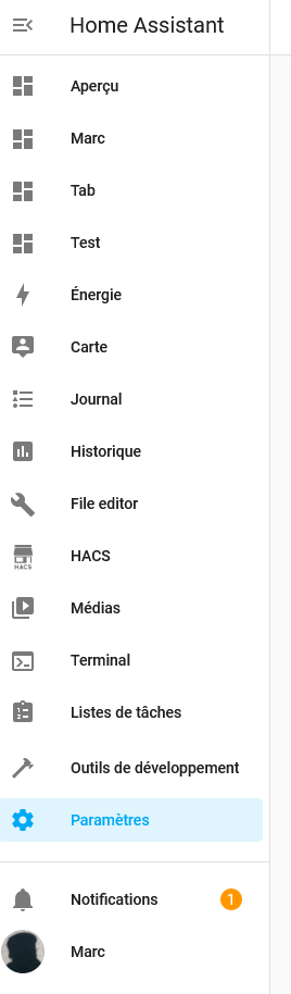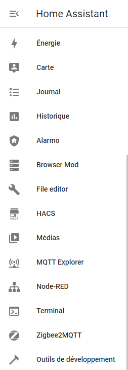 Puis fais moi une copie d’écran de ton menu HA à gauche, ça m’aidera