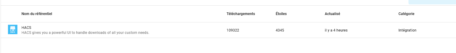 Bon, à priori ton HACS n’est plus installé… Tu peux aller jusqu’en bas de la page que tu viens de poster et copie d’écran