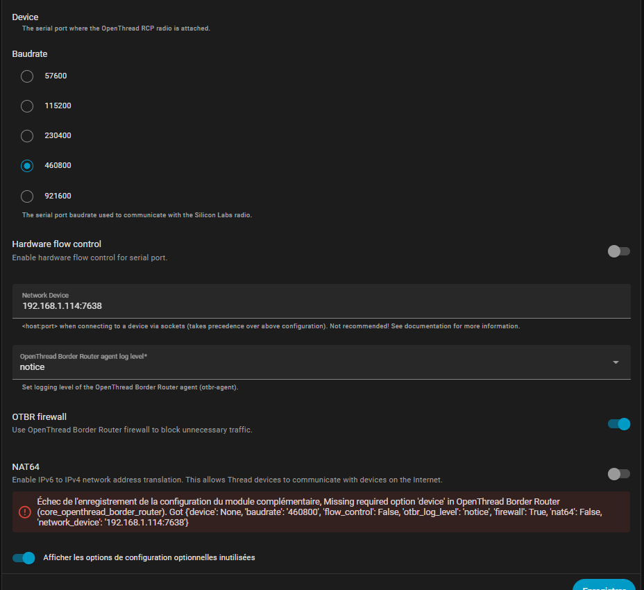 Oui j’ai bien mis a jour le firmware pour matter, et bien changé le port aussi.