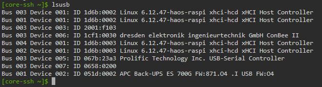 Mon soucis c’est que lorsque que je banche un dongle usb, il est alimenter mais pas reconnu dans HAOS, et c’est de pire en pire… avant le dongle sonoff fonctionnais maintenant non, idem avec l’antenne z-wave, elle s’allume en bleu mais n’est pas reconnu… si je vais dans paramètre \système \ matériel \ tout le matériel rien en ttyUSBX (ou X est le numéro du port usb); j’ai essayer de mettre un hub usb alimenter, ca change rien, l’alim de mon pi est une officiel.
