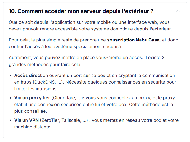 Avant de passer à une vraie solution pour accéder à mon HA(OS) depuis l’extérieur, n’est-il pas possible de le faire en connaissant mon IP publique (actuelle, je sais qu’elle change régulièrement), et en configurant sur mon routeur une redirection de port? :