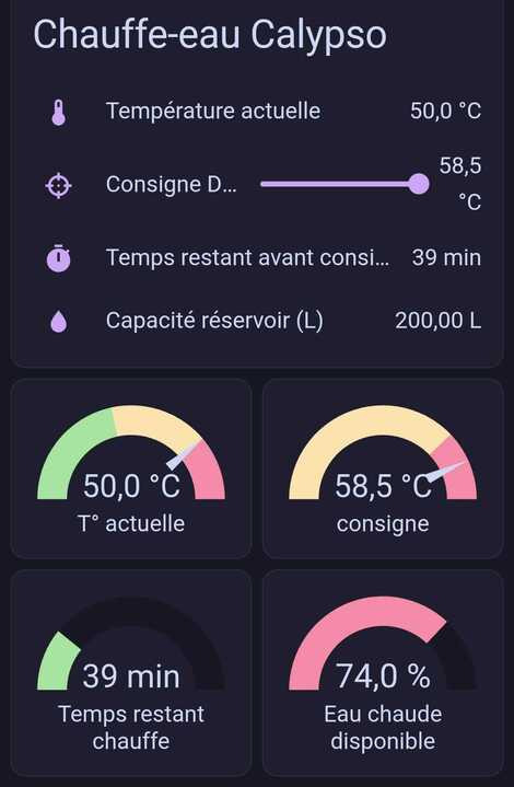 Mon besoin est d’avoir des informations sur le chauffe-eau, sa consommation, sa production d’eau chaude, son état, etc.