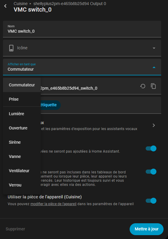 Dernière question ; comment puis je modifier un interrupteur en lampe dans le Dashboard car cela n’est pas pris en compte lorsque je le modifie dans les paramètres de celui ci!
