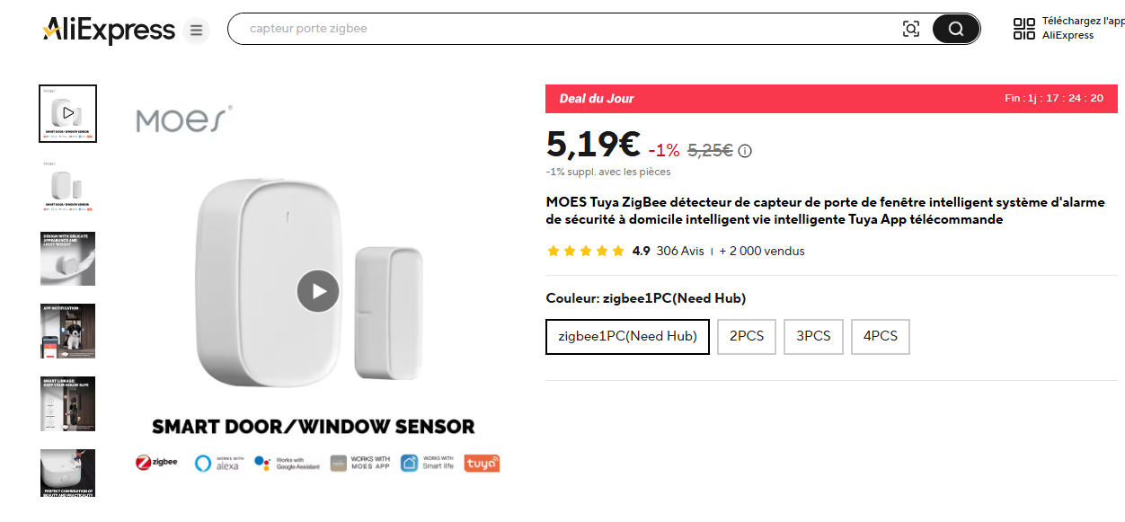 Effectivement, si j’avais eu le budget, j’aurais pris des Fibaro (Zooz n’existait pas quand je me suis équipé) et du zwave mais je ne l’avais pas… Je compare juste le prix chez Domadoo (qui rechignent lorsqu’il y a un problème de garantie) et Ali Express qui vendent les mêmes produits 50% moins cher environ.