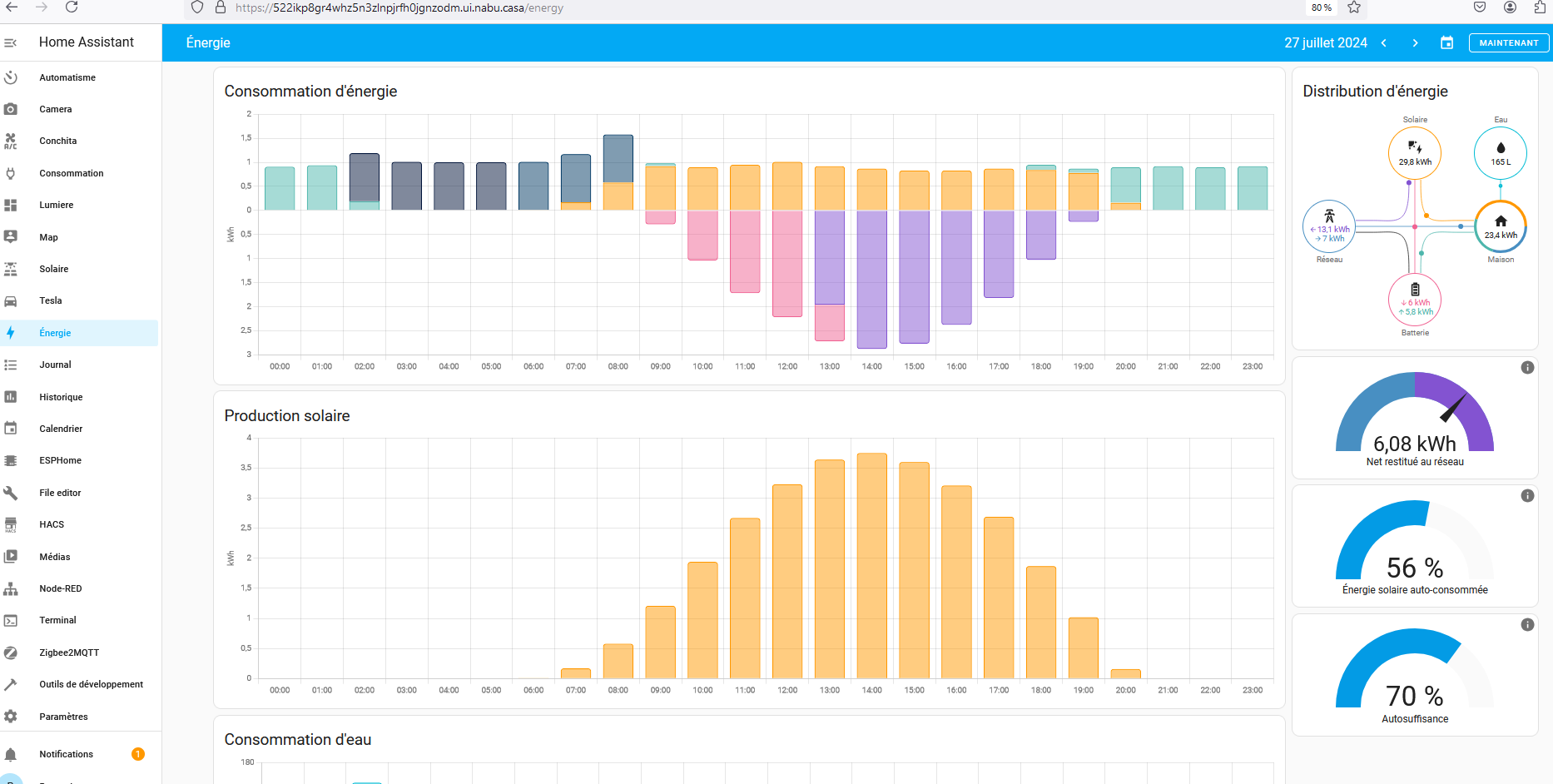 Après avoir installé des panneaux solaires il y a quelques semaines, je me suis lancé sur HA avec 1er objectif de suivre ma production solaire et ma conso EDF. Actuellement les deux sont surveillés sur smartphone : SOLARMAN pour le solaire / HELLOWATT pour la conso EDF.