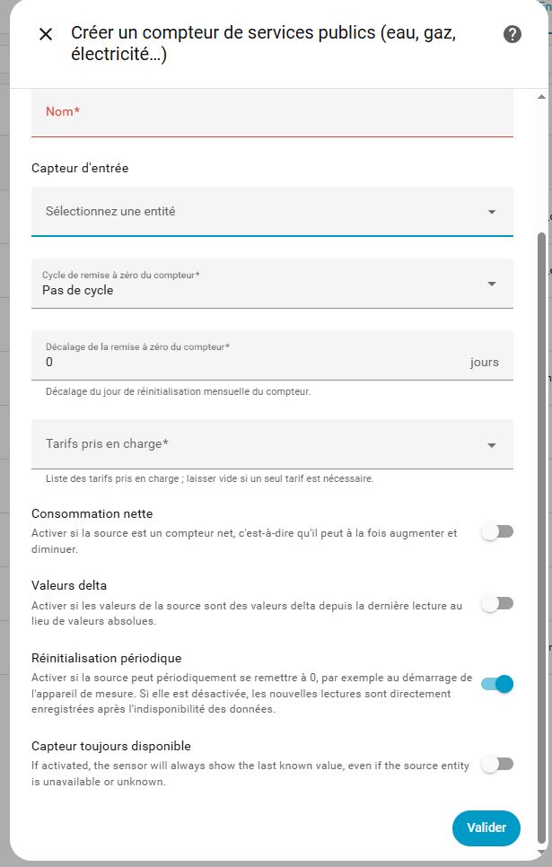 Je regarde du coté maintenant du plugin utility meter qd on crée un nouveau compteur il y a le capteur d’entrée et la je ne vois rien provenant de Ha Linky ou Energie.