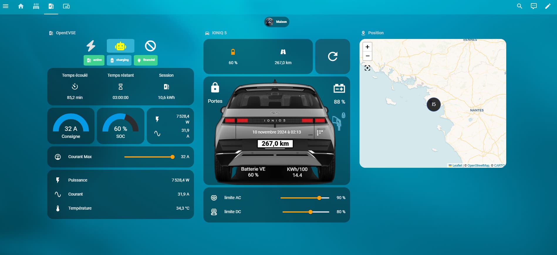 Et elle est pas mal mais perfectible : Perso j’ai un gros écart entre la consigne et le courant de charge réel, et un écart entre le courant de charge réel et le courant mesuré par la borne (les 2 sont certainement liées) et je n’ai toujours pas trouvé le moyen de corriger ce décalage (moyen qui existe mais qui à été bloqué dans les dernières version du firmware, et mes questions à ce sujet sont resté sans réponse)