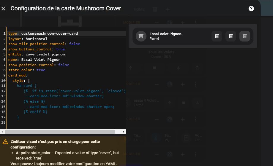 La fonction customize te permet de dire à home assistant le type de cover que tu utilises, et te permet alors d’utiliser les cartes sans modification par card_mod.
