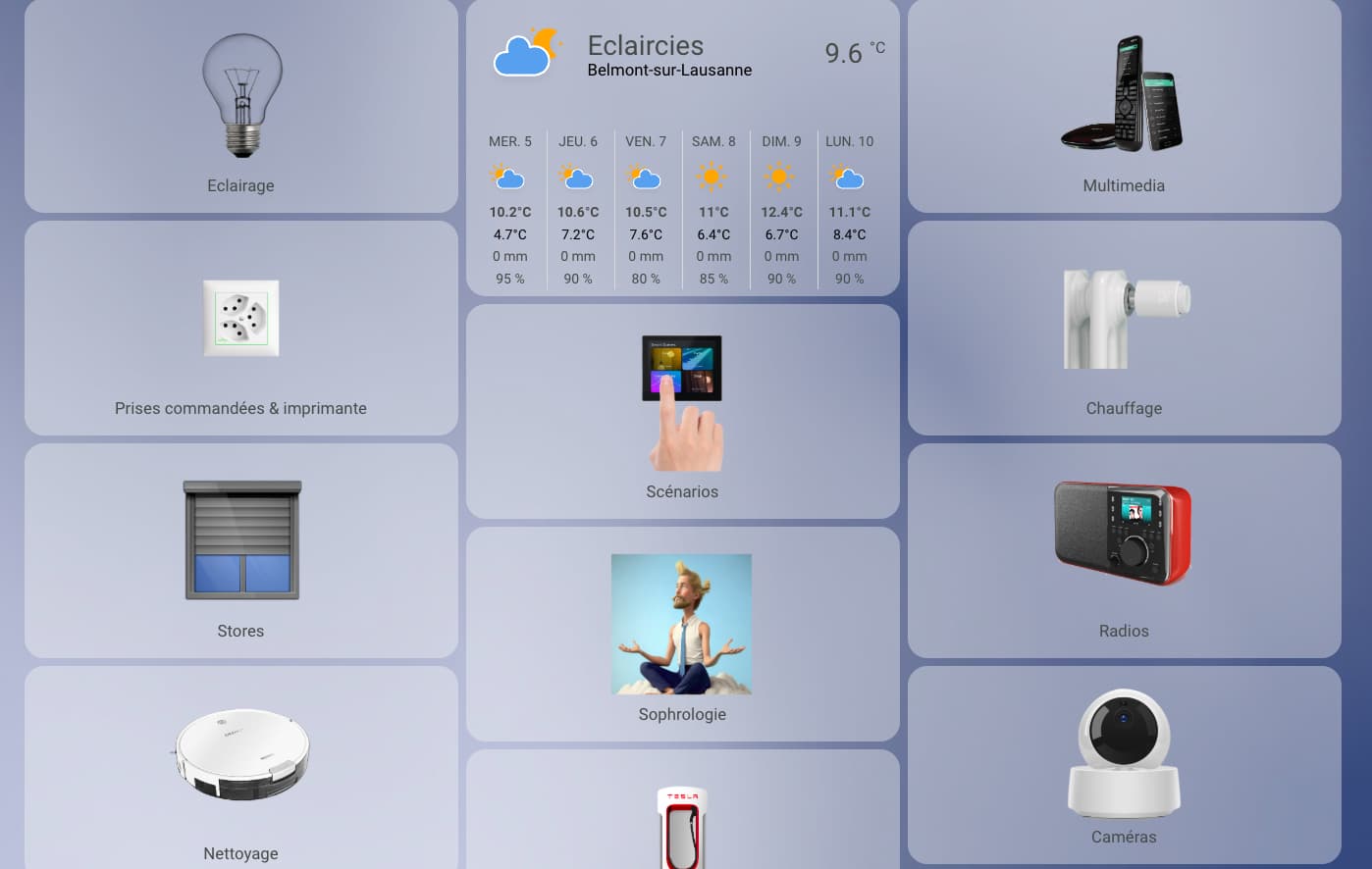 Et pour de jolis boutons, des mushroom chips ou des cartes mushroom sans le nom et l’état et on arrive à faire de boutons carrés avec une icone ou une image…
