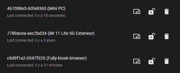 j’ai redémarré HA, fully kiosk, et la tablette mais je reste toujours sur l’affichage HA configuré dans fully kiosk… pas non plus de petit icone à cliquer sur la tablette…