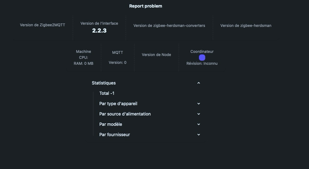 Enfin presque…Que faut-il que je vérifier dans la console Zigbee2MQTT, par exemple, dans Paramètres / A propos, ne faudrait il pas que j’ai des infos qui remontent ??