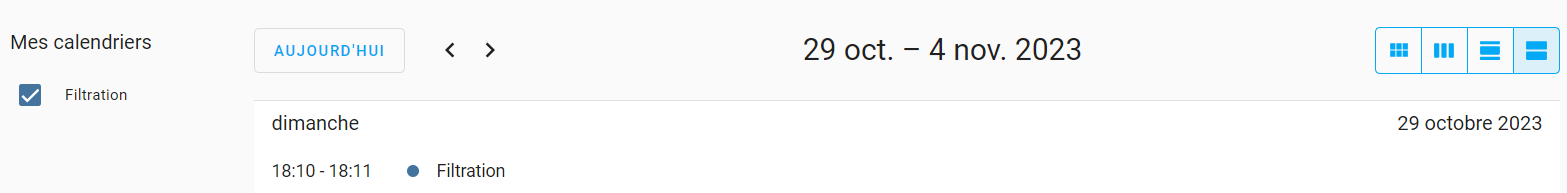 - a condition que l’évènement ‹ filtration › soit bien présent dans mon calendrier