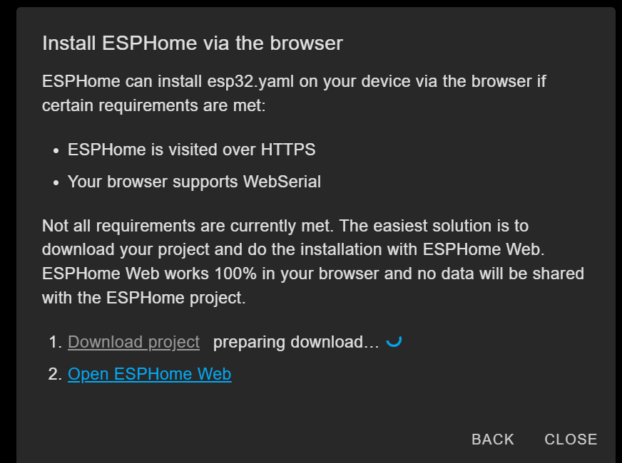 Tout se passe depuis le menu ESPhome de HA, add device, ensuite dans les intégrations il sera reconnu et tu devras cliquer sur ajouter ou accepter il me semble.