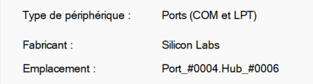 Gestionnaire de périphériques : l’ESP32 est bien détecté correctement