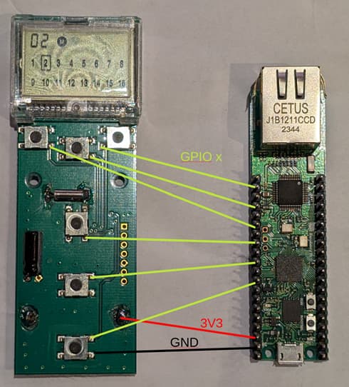Je vais donc venir souder mes sorties GPIO du Pico, aux entrées GPIO du µC télécommande, en mode pull-up et mise à GND quand activée.