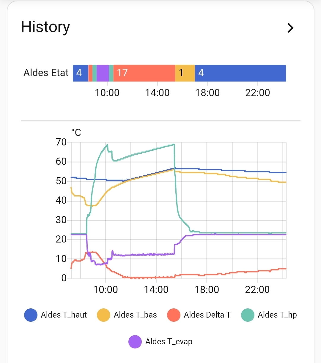 Cela me permet également de suivre les données de fonctionnement de mon chauffe eau et ainsi voir les dérives dans le temps de la pompe à chaleur intégrée