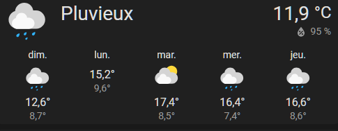 Ouaip avec meteo France dans la carte hacf sa apparaît comme pour variable sans icone avec undifined , je viens de tester en changeant l’état en mettant Orage/Pluie ou Orage / Pluie la même undifined