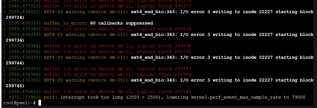 Mar 04 21:19:11 pve1 kernel: perf: interrupt took too long (3132 > 3128), lowering kernel.perf_event_max_sample_rate to 63000
