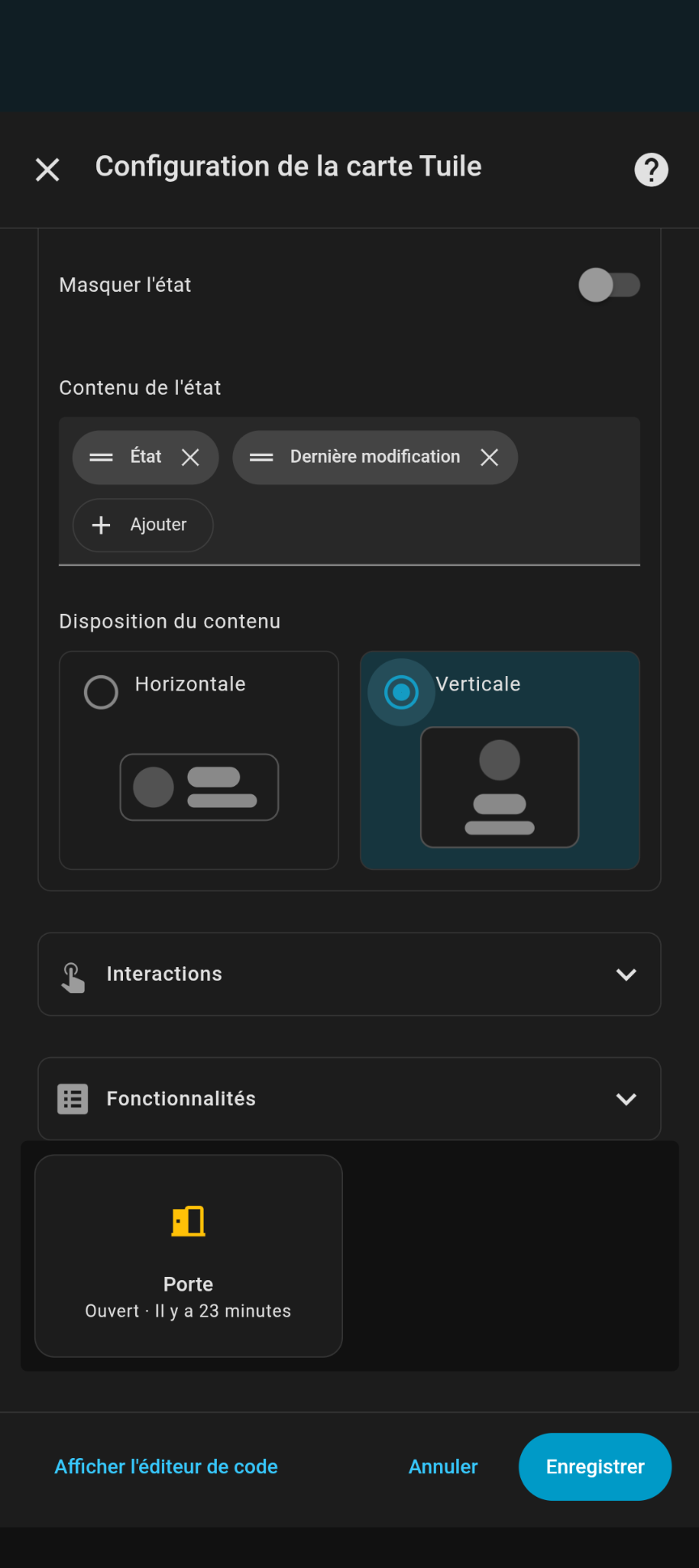 si c’est pour manipuler, tu peux eut être ajouter des actions a ton entité (genre toggle de la porte du garage quand tu appuies sur le status) ?