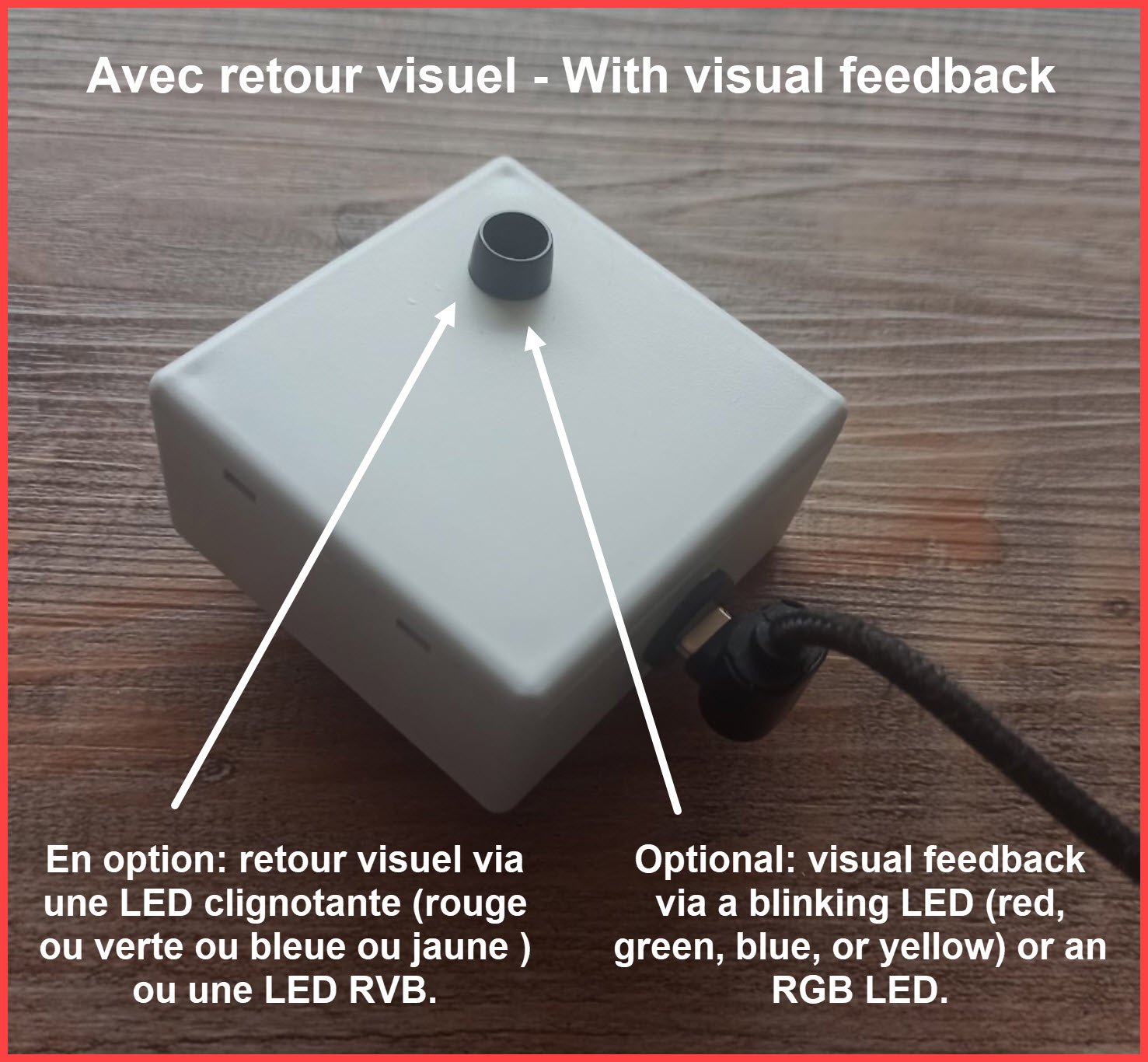 En option, je peux ajouter un retour visuel, c’est-à-dire une diode LED clignotante (rouge, verte, jaune ou bleue) ou une diode RVB, que vous pourrez gérer via une ou plusieurs entités dans Home Assistant. Ce retour est entièrement indépendant du LD2410, vous pouvez l’utiliser, par exemple, pour indiquer l’état d’une alarme…Prix : 23€ port compris.