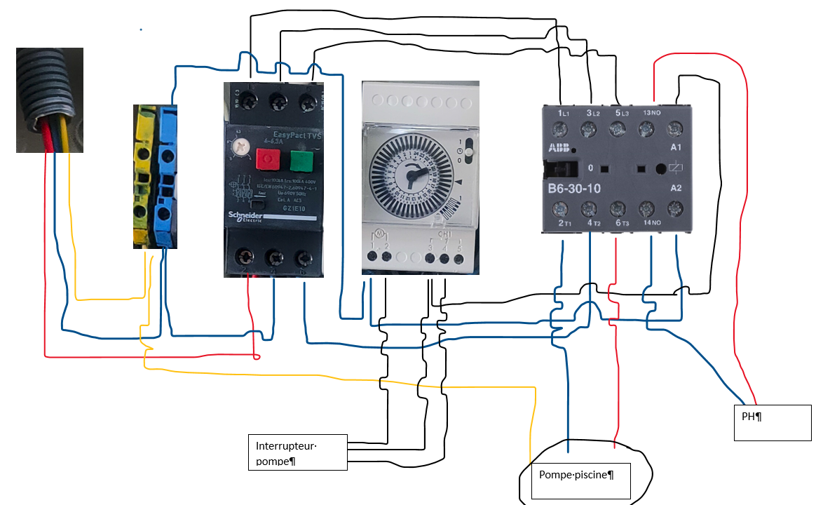 Tu peux mettre une photo du branchement sur programmateur horaire(horloge).