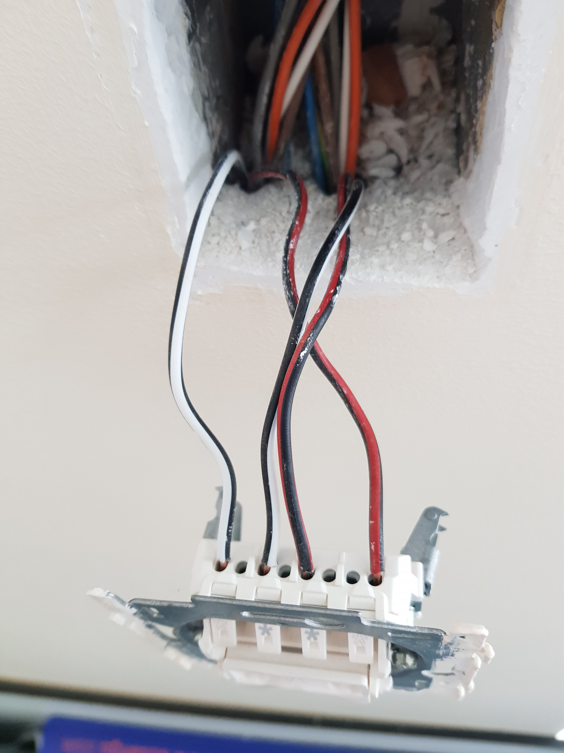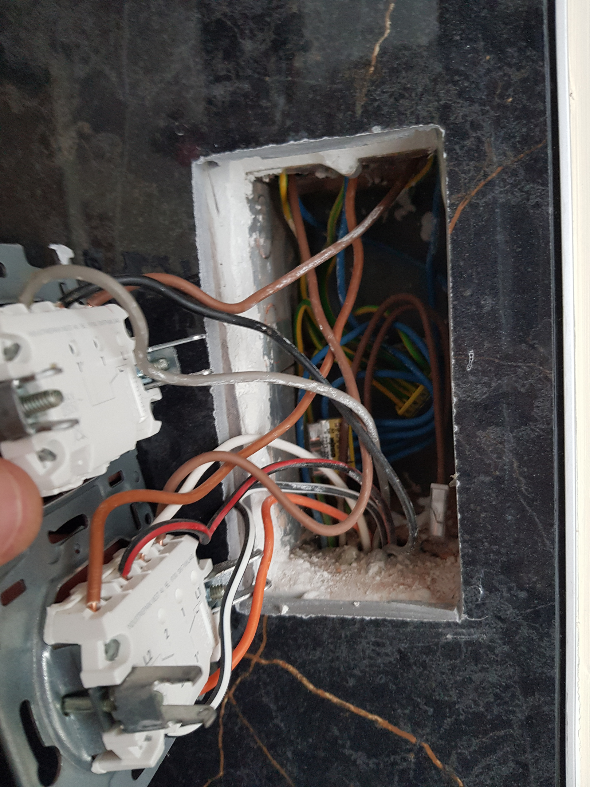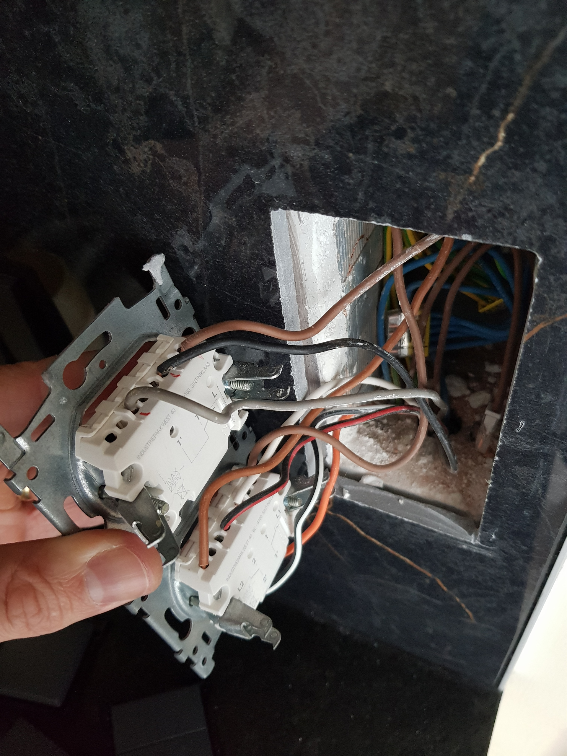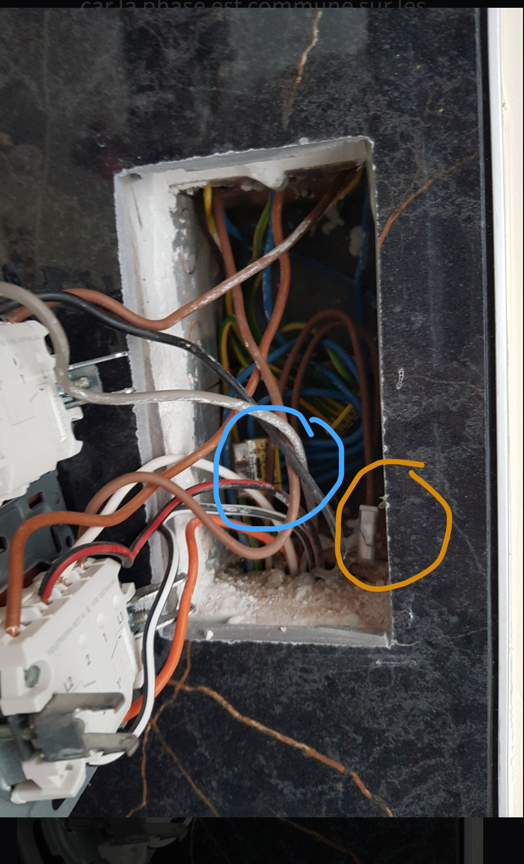 Si l’alimentation est bien les fils que j’ai entouré, tu n’auras pas à remplacer les boutons , par contre il faudra faire de la place pour mettre les modules dans la boîte de raccordement.