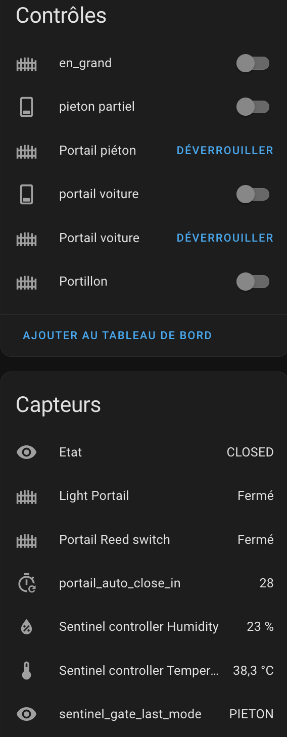 Pour la fermeture vraiment casse pied en mode OU exclusif(si bouton gauche utilisé pour ouvrir bah pour fermer il faut aussi réutiliser ce même bouton) j’ai aussi gommé ce défaut dans ESPHome, qu’importe si j’ai ouvert le mode pieton ou double battant, que je ferme via l’un de mes 2 switch bah ça ferme point barre.