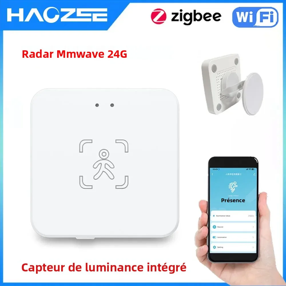 Si tu n’as pas envie de fabriquer un radar MMWave à base de LD2410, j’ai acheté ce modèle, que j’ai fixé au plafond des WC, il fonctionne très bien depuis presque 1 an. (Acheté le 23 avril 2025)