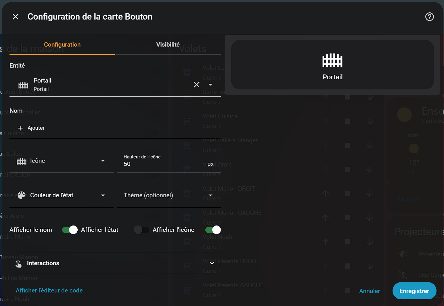 Comme ça ton entité binary_sensor.0xa4c13878c356beb4_garage_door_contact aura ces icônes et couleurs, n’importe ou dans ton HA. Plus besoin de les modifier dans les cartes.