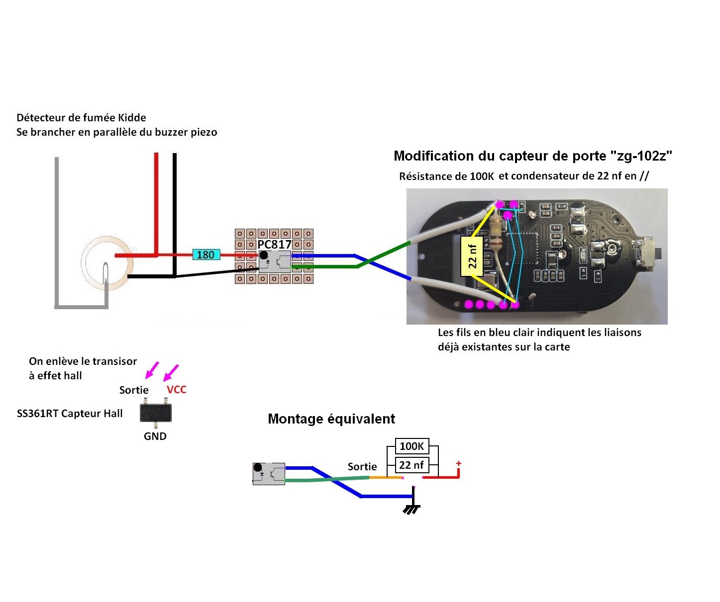 Voici un montage testé avec succès pour domotiser un détecteur de fumée Kidde avec un capteur de porte Zigbee zg-102z que l’on trouve à pas cher.