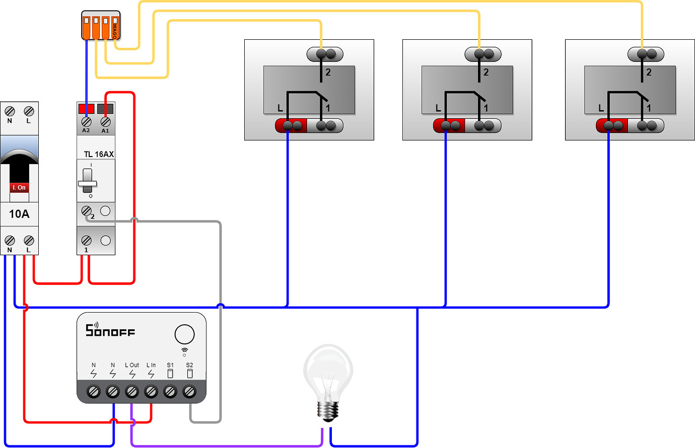 Je m’imaginais prendre un télérupteur connecté LEGRAND mais en regardant les câblages, pas sûr que ça soit simple.
