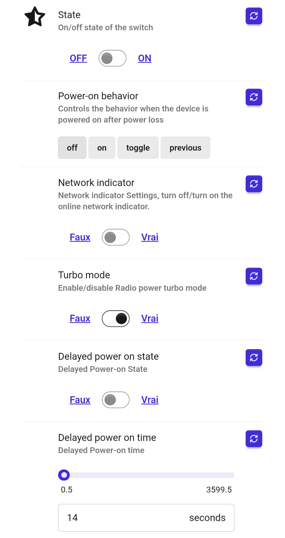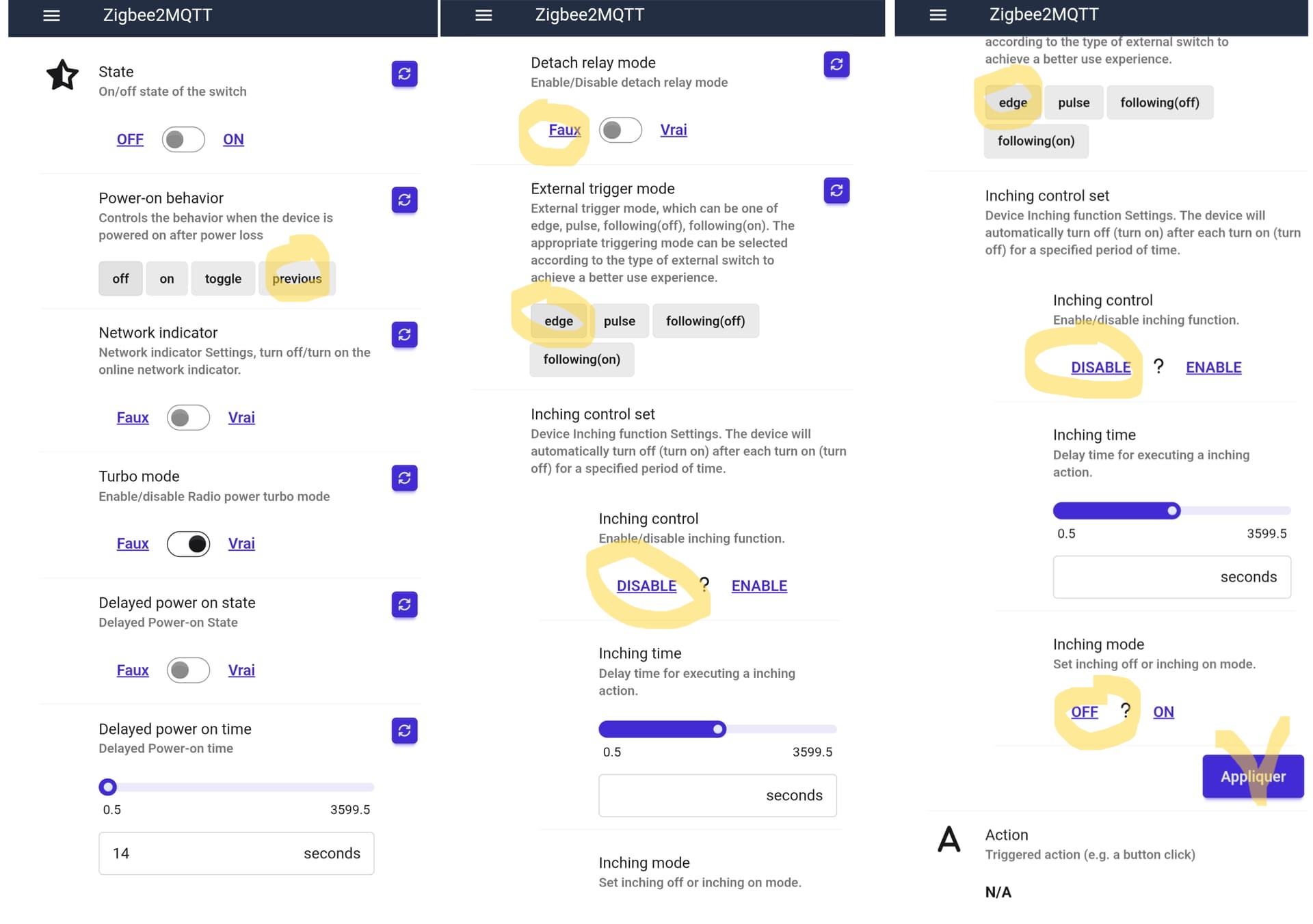 Effectivement je n’ai touché qu’aux réglages de l’état en cas de coupure, au trigger mode et mode boost.