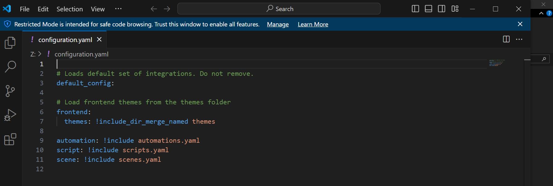J’ai modifié le fichier configuration.yaml.