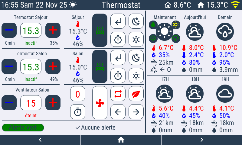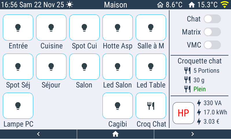 J’utilise OpenHASP, que je trouve plus pratique pour coder son menu. Pas besoin de reflasher un firmware pour voir le résultat. C’est directement dans des fichiers YAML et de recharger l’intégration pour voir le résultat.