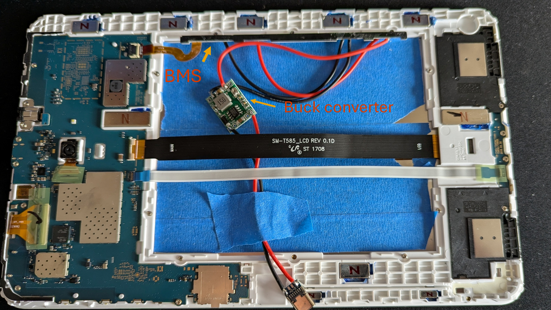 Comme j’ai dit dans un autre sujet, j’ai récupéré une ancienne tablette samsung tab A(10.1) SM-T580, la batterie était HS. Je voulais la faire fonctionner en la branchant en continu. Mais laisser la batterie n’est pas bon et de doute façon la tablette de démarrer plus.