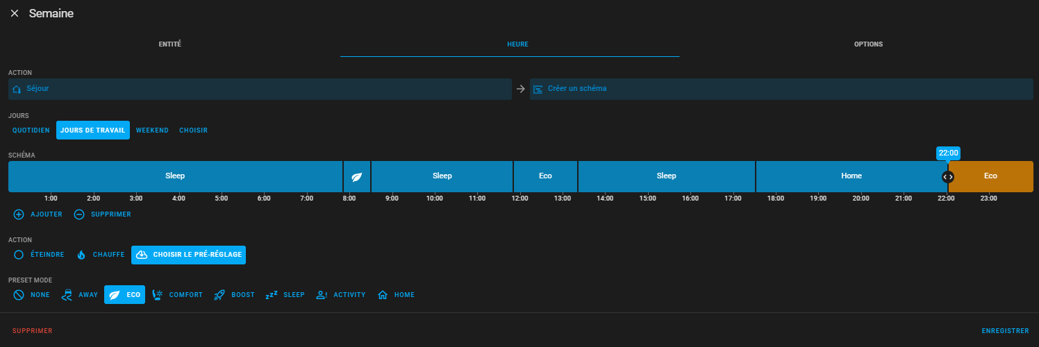 Je crée quelques planifications avec le scheduler et surtout la superbe carte scheduler-card