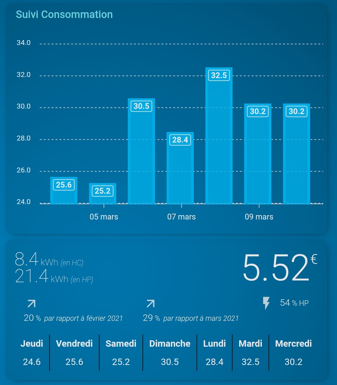 Au besoin, on peut envoyer les infos sur un influx DB et avec grafana avoir un dashboard hyper puissant avec le prix en tarifs de base et hc/HP…