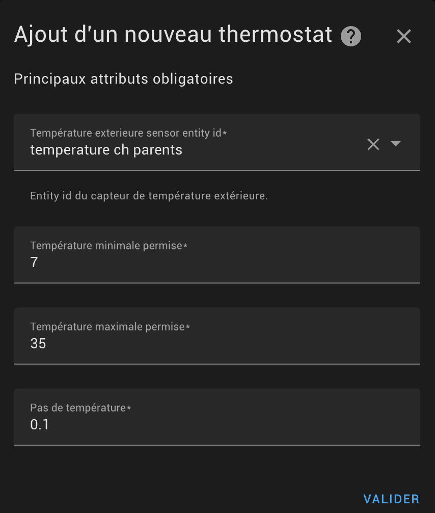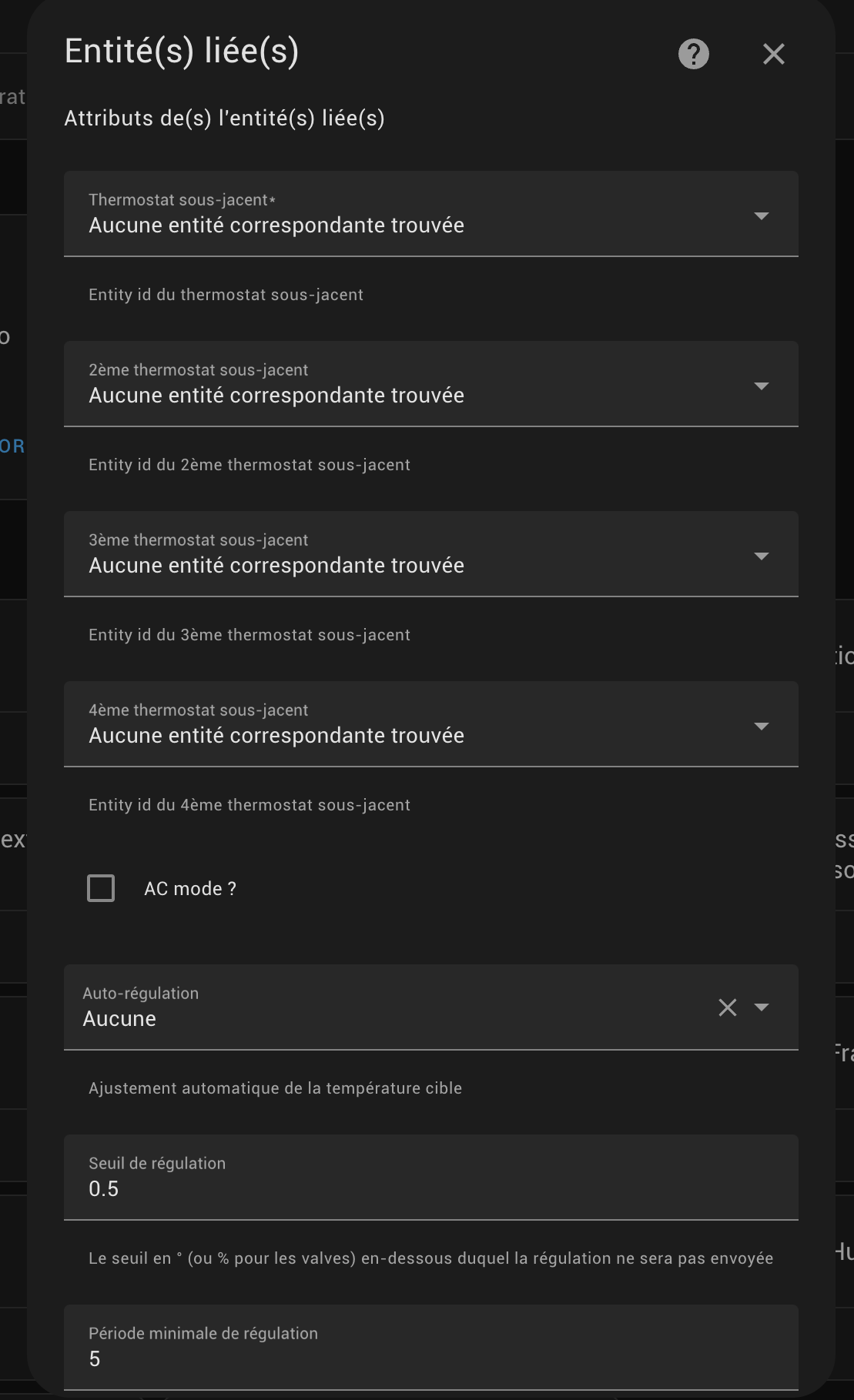 Est ce que vous pourriez savoir pourquoi lors de l’ajout d’un thermostat il ne trouve aucun thermostat sous-jacent. J’ai, dans les parties précédentes renseigner un capteur de temperature, un capteur de température extérieure (météo locale).