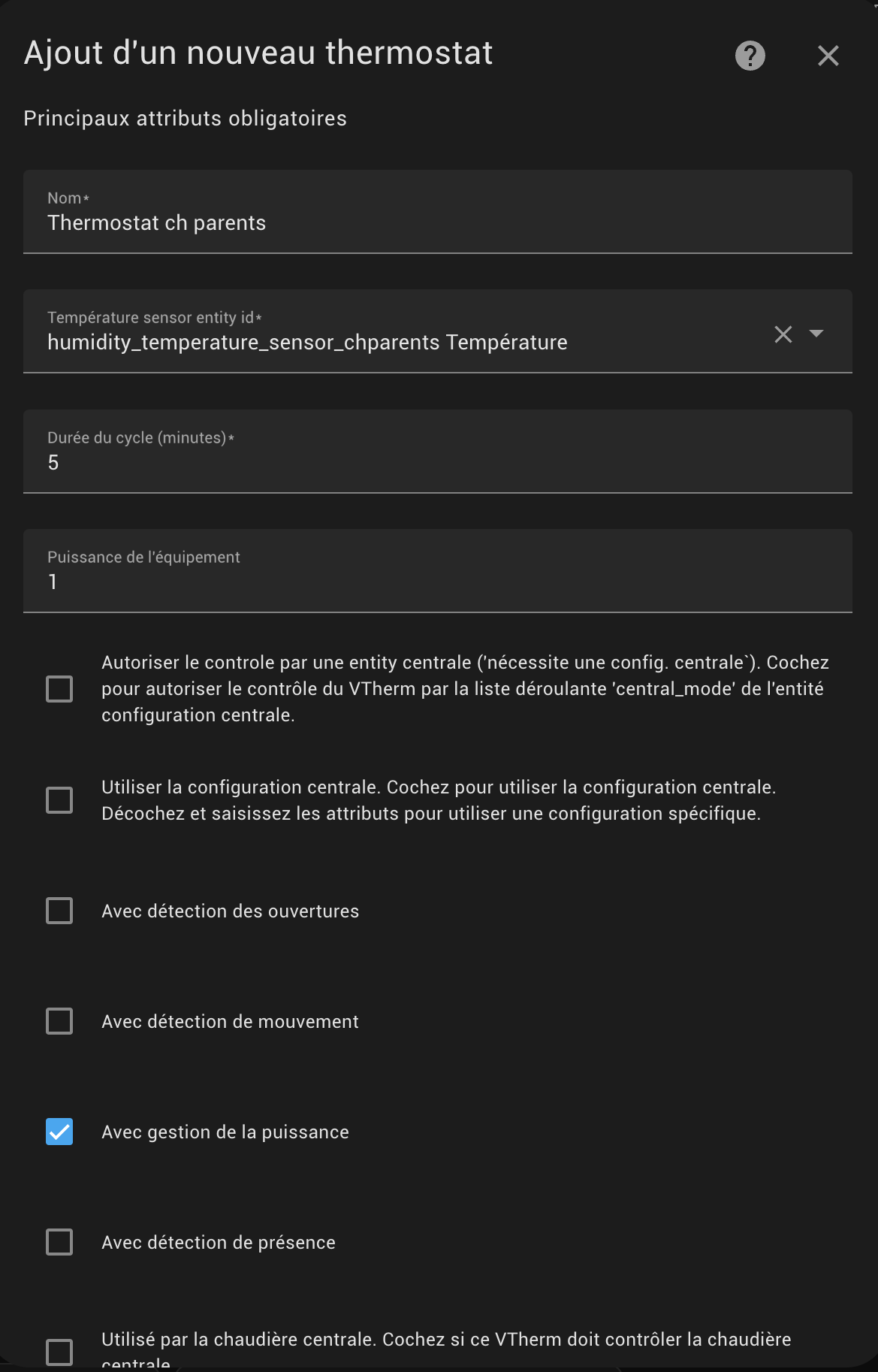 pour ma part, je n’utilise pas versatile thermostat, mais le thermostat de base inclus dans HA. Il te suffit de créer une entité de type « climate », qui permet de relier un chauffage à un capteur de température.