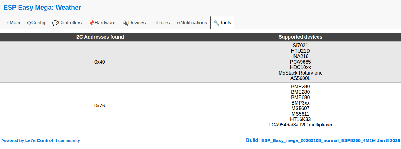 Tools / I2C Scanner: