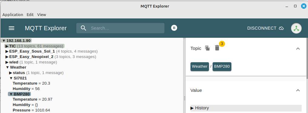- Re démarrer ESPEasy pour que l’envoi des 3 messages soit effectué