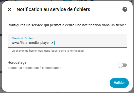 Tu vas dans paramètres intégrations, ajouter une intégration et tu tapes file et tu cliques dessus. Ensuite tu choisi « configurez un service de notification » et tu remplis comme ceci :